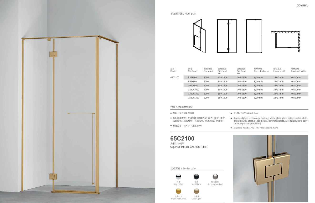 In summary, the 65C2100 square shower enclosure is engineered to deliver a blend of stylish aesthetics and functional performance. Meticulously designed for those who value form and function equally, it elevates the ordinary bathroom into a serene and sophisticated personal spa.