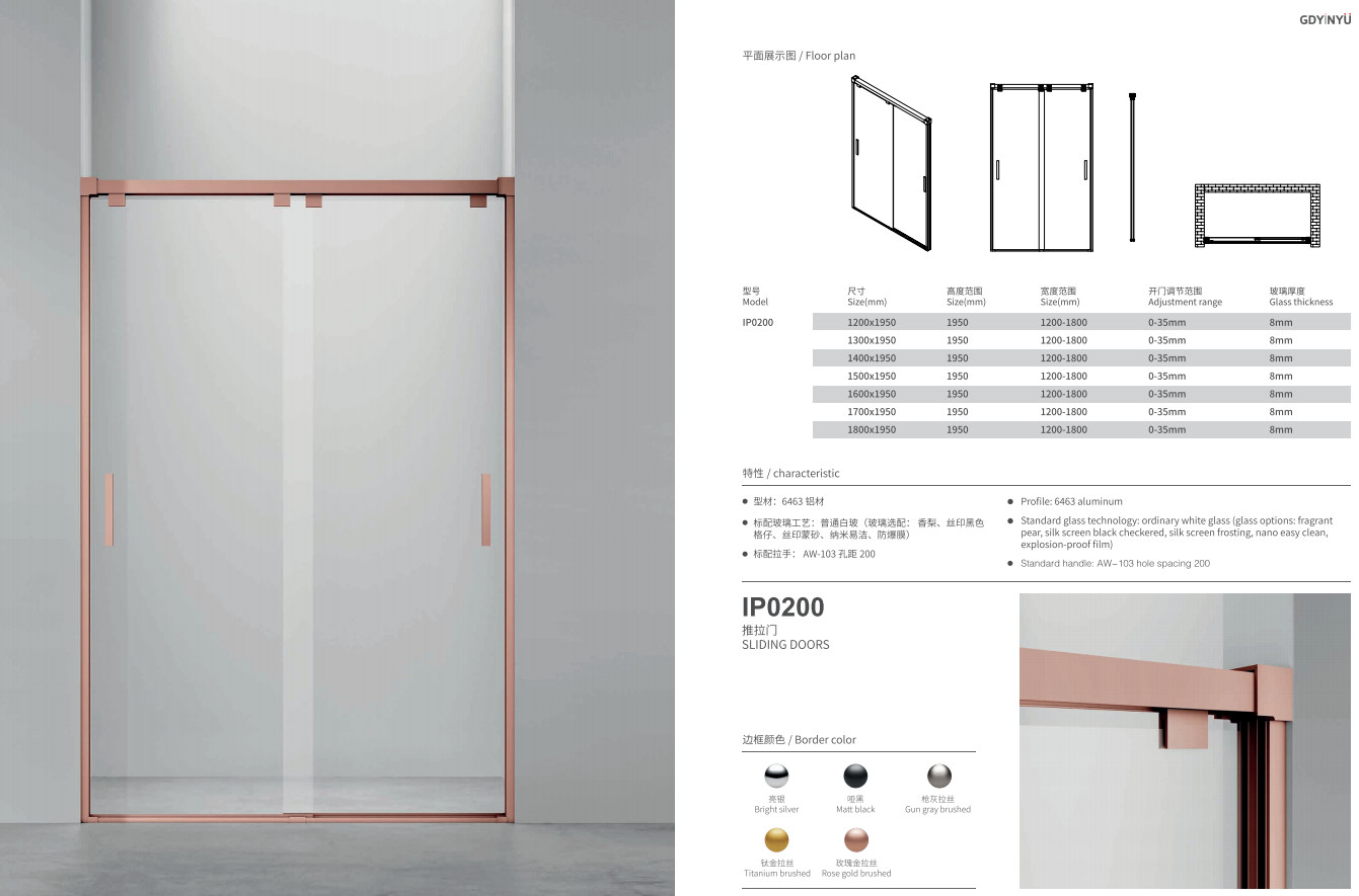 | Glass Thickness: | 6mm/8mm | Hardware Color: | Bright Silver / Matte Black / Gun Gray Brushed/Titanium Brushed/Rose Gold Brushed |
