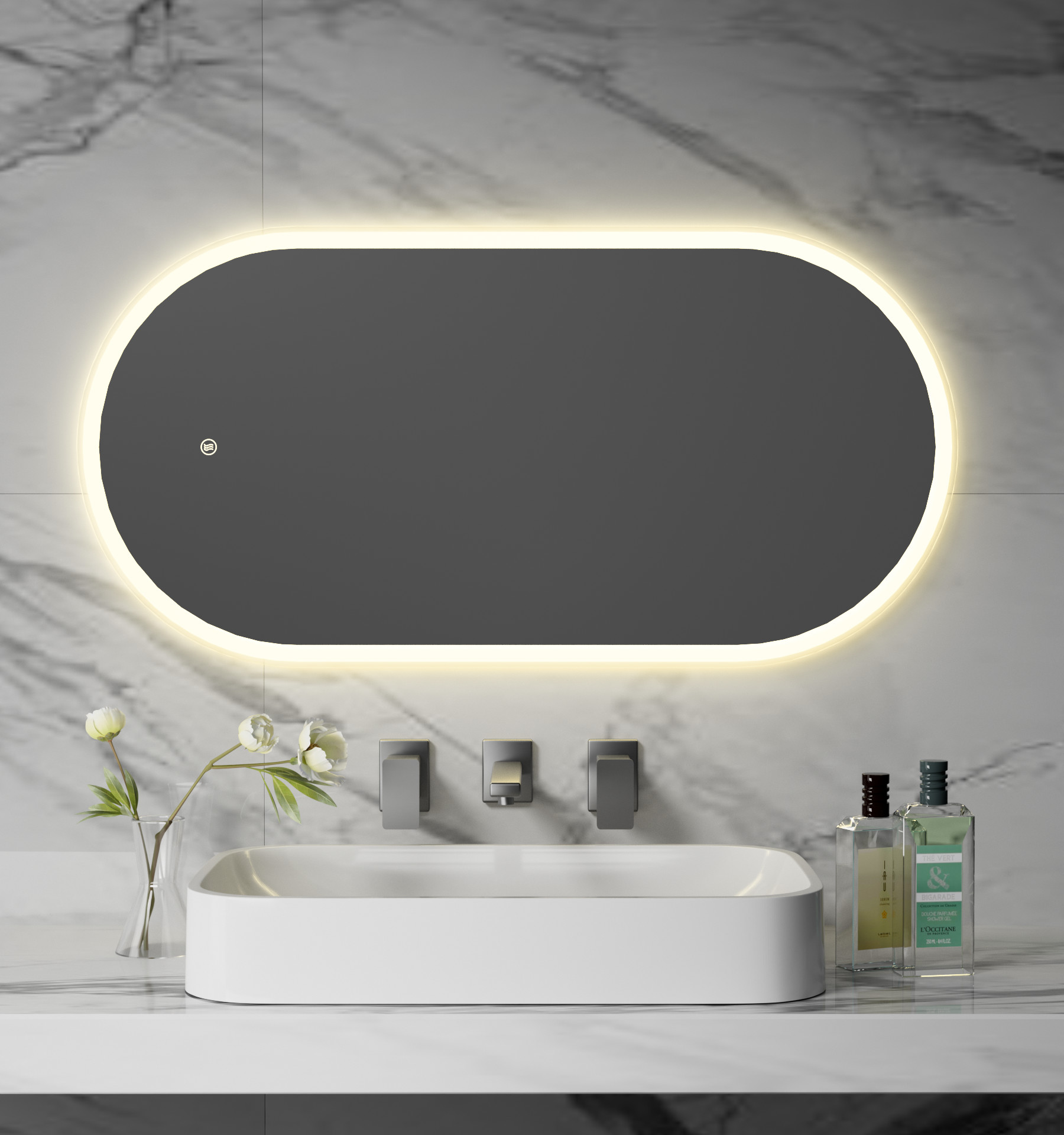 Dual-Touch Control Smart LED Bathroom Mirror With Anti-Fog Function Stepless Dimming